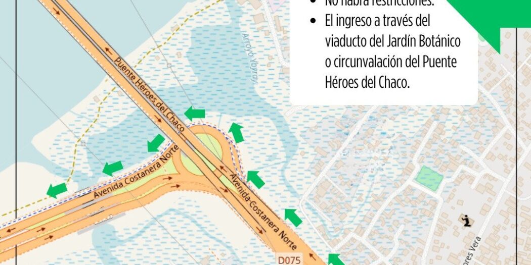 El MOPC aclaró que el ingreso a la ciudad por la Costanera no tendrá restricciones y podrá realizarse a través del viaducto del Jardín Botánico o por las colectoras conectadas a la circunvalación del Puente Héroes del Chaco.