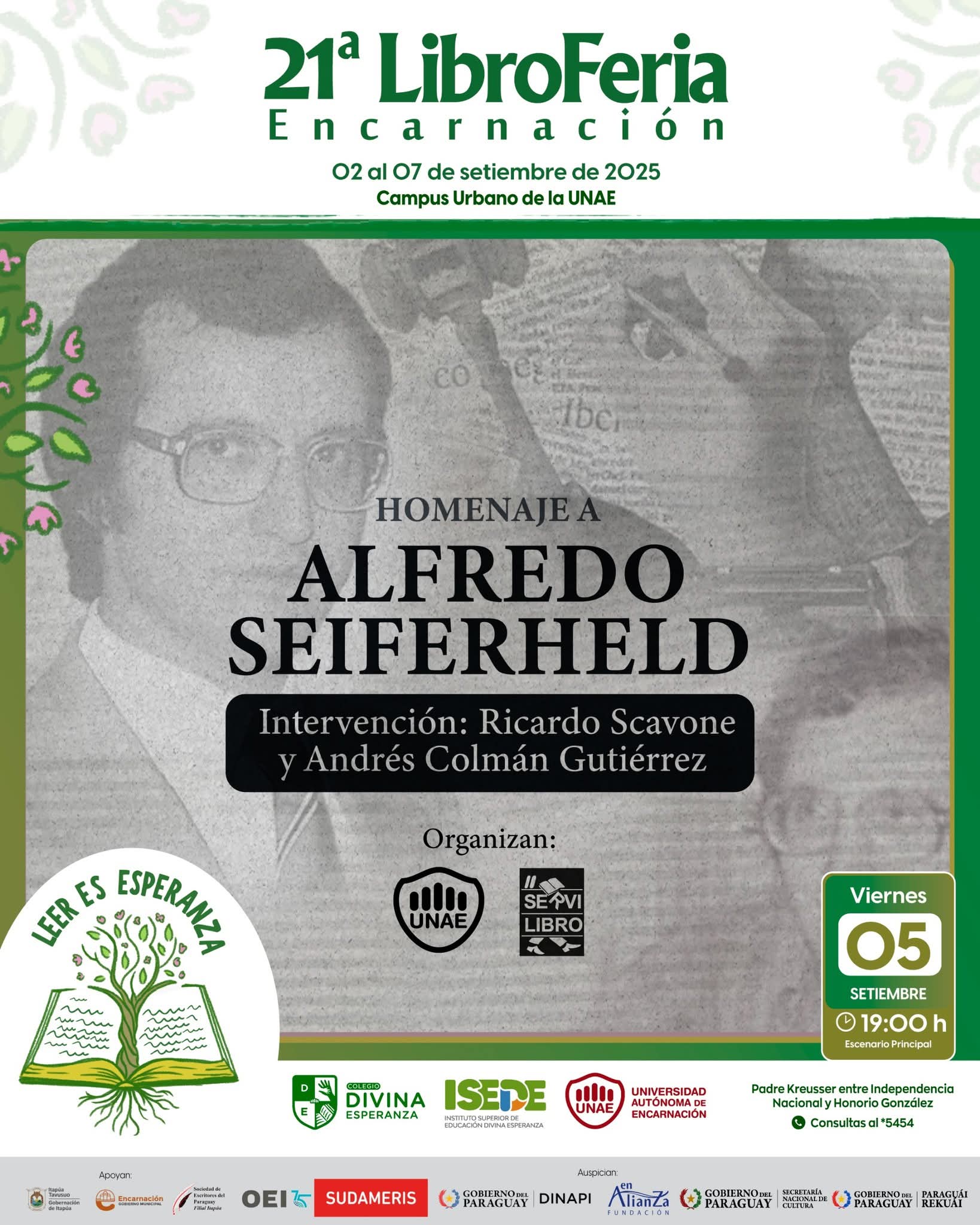 Este viernes 5 de setiembre, la Libroferia Encarnación será escenario de un homenaje especial al historiador Alfredo Seiferheld, al cumplirse 75 años de su nacimiento. El encuentro reunirá a lectores, investigadores y periodistas para reflexionar sobre la trayectoria de quien, además de historiador, fue periodista y editor comprometido con la divulgación del conocimiento.
